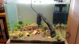 Ich trau mich gar nicht so recht, ein Foto zu posten, nachdem ich die ganzen hübschen Aquascapes im Internet gesehen habe... Seid bitte gnädig mit mir, es ist mein erstes Aquarien-Layout: