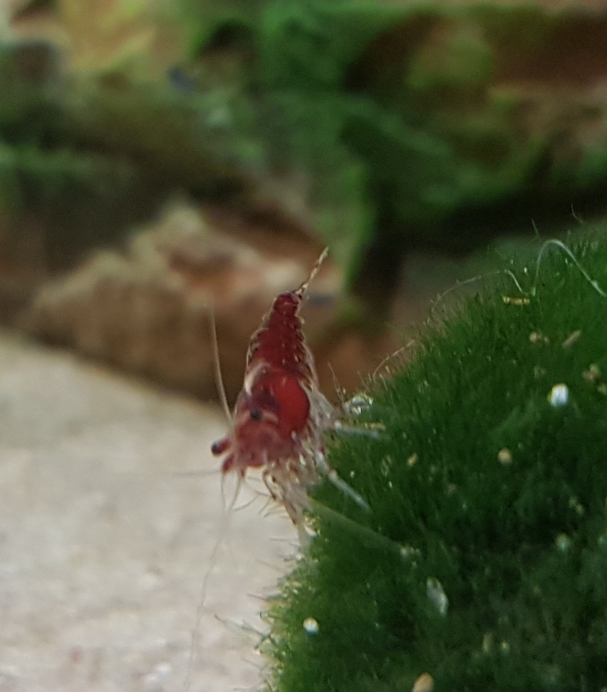 heute hab ich es wieder entdeckt. Habe die Garnele erstmal in ein anderes Gefäß gepackt, um ein Foto zu machen. Leider hält die nicht still... Man kann es jedenfalls nicht mit einem Wattestäbchen abstreifen. Vielleicht könnt ihr nun mehr erkennen. Ich versuche noch ein bessetes zu machen.
