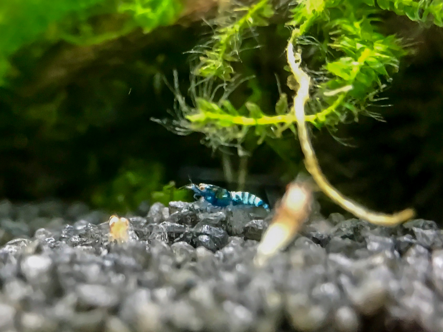 Ich habe Red Bees, und seit Dezember Spotted Head Bee (mit Pinto-Gen). Die waren auch von jetzt auf gleich sehr Vermehrungsfreudig und Streiten sich gerne mal kurz mit den Red Bees. Vor gut einer Woche entdeckte ich auf einmal unter den ganzen Neugeborenen blaue mit weißen streifen (mal zwei, mal vier oder wie der Kollege unten)
