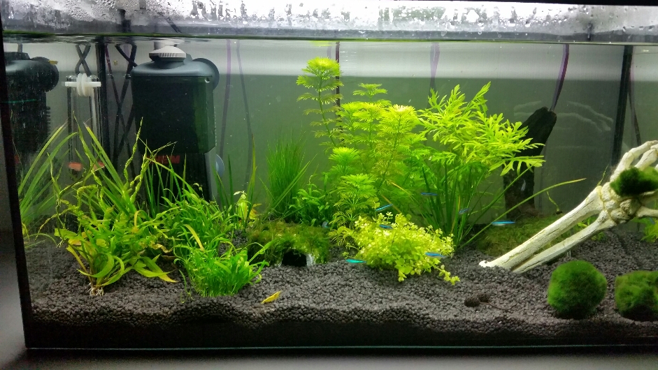 Ich überlege blaue Neonsalmler oder smaragdgrüner Zwergrasbora oder Moskitobärbling.