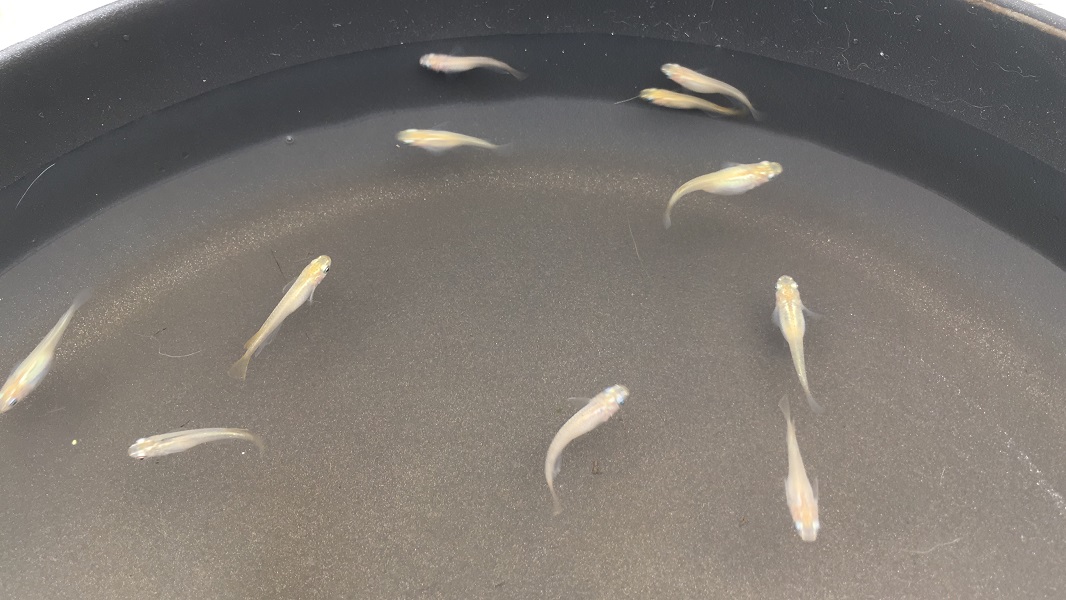 Ganz stolz bin ich auf diesen Stamm. Es ist ein Mix, Miyuki x Tiger Mix, warmweißer Körper mit leicht gelblichen Flossenrändern. Sehr schöne Körperform und sehr vermehrungsfreudig und stabil.