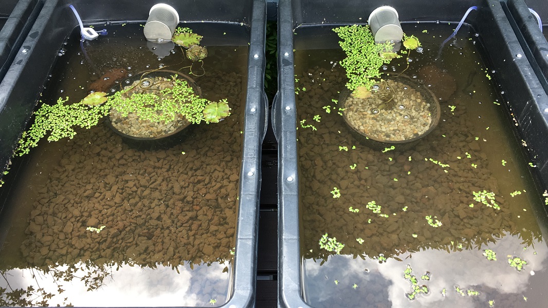 Sollen die Madakas später auch mal in den Bottichen ablaichen, sind Schwimmpflanzen mit großen herabhängenden Wasserwurzeln sinnvoll (fehlen noch).