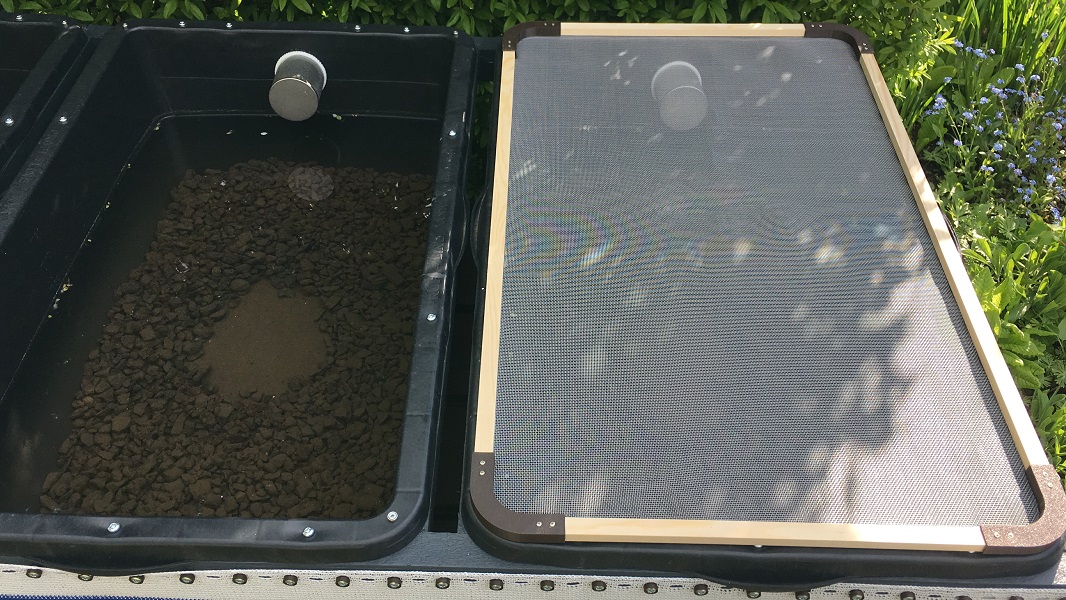 Insektenschutzgitter mit magnetischer Verriegelung.Auch hier sollen mal Medakas rein (das Foto ist noch von Anfang Februar).