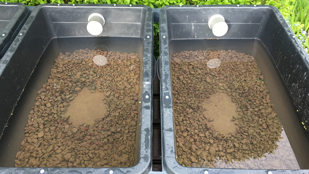 Medakas wachsen schnell, schon nach 2 Monaten sind sie so groß das man sie an Außenbottiche gewöhnen kann und sie im Gaten unterbringt. Nach ein bißchen Bastelei ist das hier entstanden.