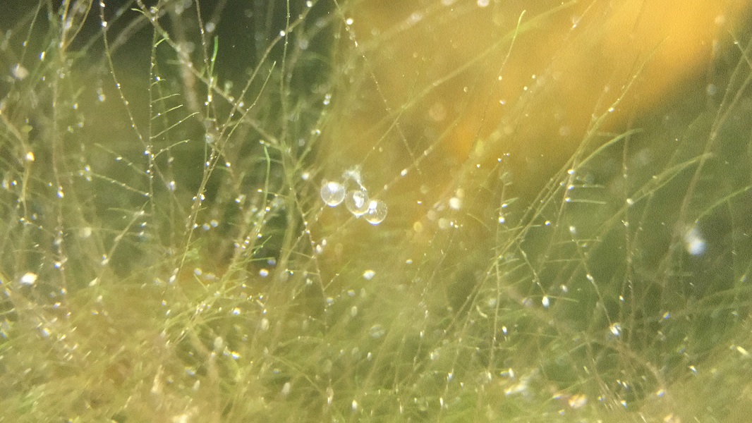 Das ist mittlerweile so dicht, das ich nicht mal die Schnecken drin erkennen kann wenn sie auf der anderen Seite rutschen. Aber irgendwas muß darin ja leben, sonst würde es müffeln und gammeln.