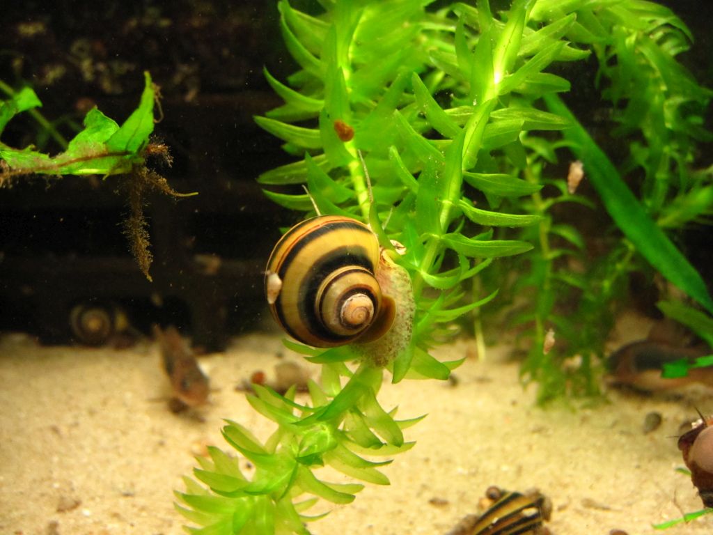 Ich habe in diesem Aquarium sogar noch "Yodaschnecken" entdeckt. Ich hatte gedacht, alle seien verschwunden, aber sie leben augenscheinlich auf dem Lochgestein. Kenne jetzt den korrekten Namen nicht, ist aber eine Radix-Art: