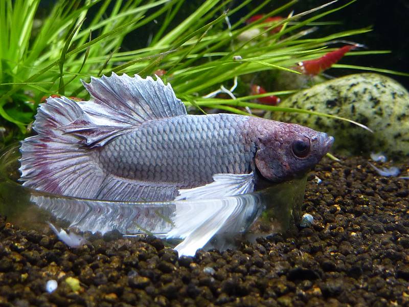 Meine habe ich nur mit Schnecken und Garnelen vergesellschaftet, manche Bettas tolerieren das nicht und jagen die Shrimps. Aber meine beiden sind super chillig, ich hab die glaub ich noch nie mit Stressfärbung gesehen.