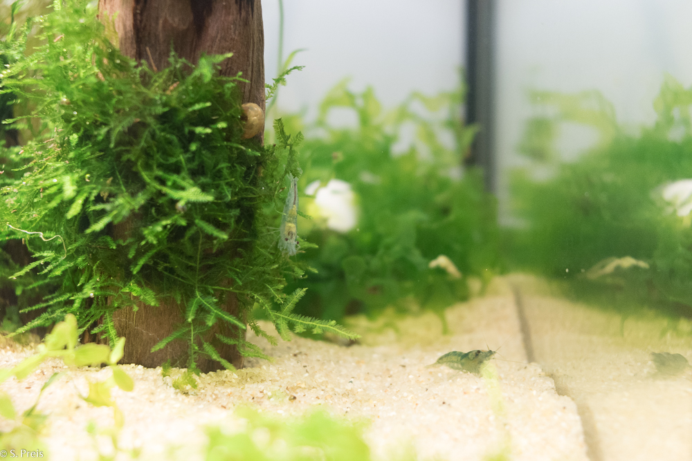 Soweit erstmal, geplant ist noch etwas Laub auf dem Boden, und als weiterer Besatz eine Geweihschnecke zusätzlich zu den vorhandenen PHS, TDS und Blasenschnecken.