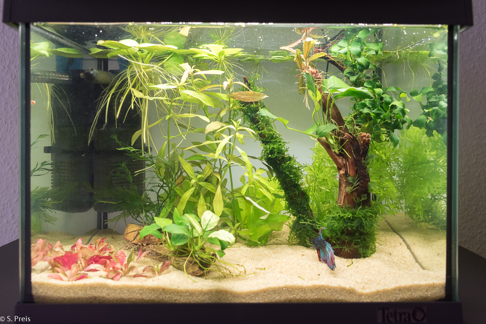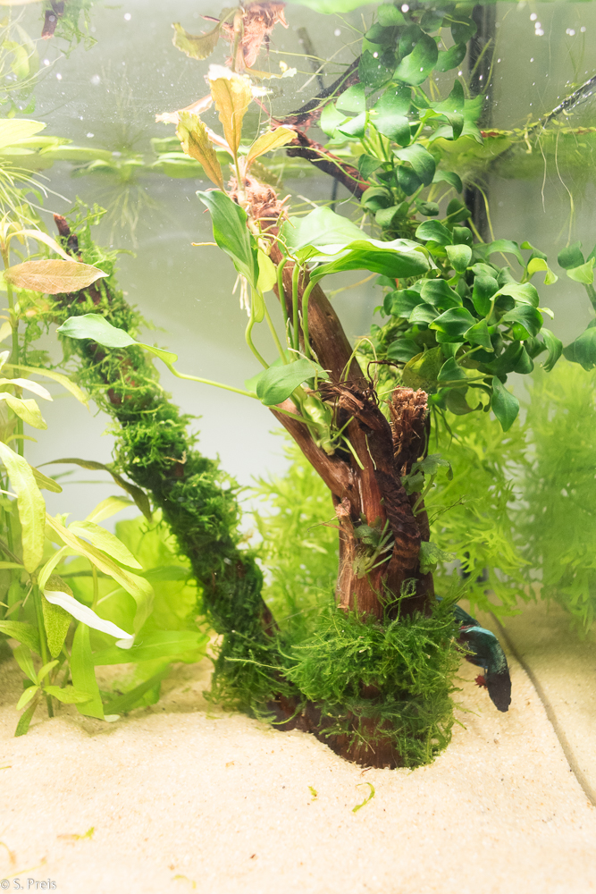 Soweit erstmal, geplant ist noch etwas Laub auf dem Boden, und als weiterer Besatz eine Geweihschnecke zusätzlich zu den vorhandenen PHS, TDS und Blasenschnecken.
