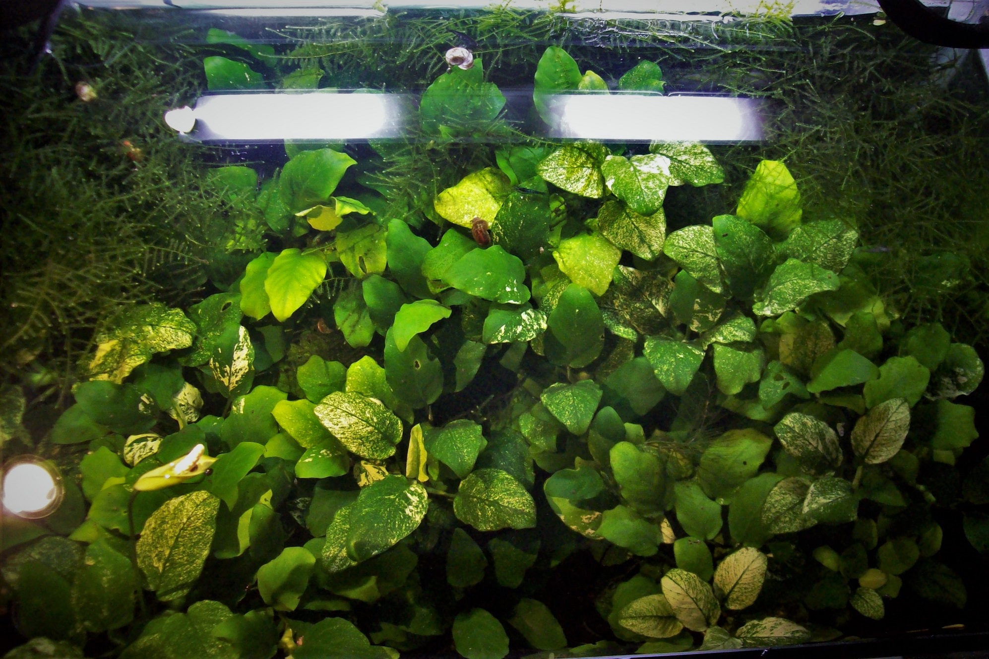 Aber irgendwann war auch das geschafft, ein paar Lavasteine zogen wieder ein, die Anubien wurden auseinander gerupft, die Wurzeln beschnitten, die Pflanzen neu drapiert... und nun könnte man fast sagen, es sieht wieder aus wie ein Aquarium, oder?