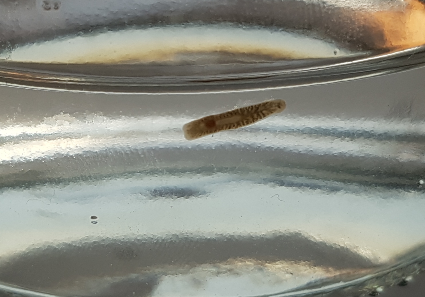 - das größte gefischte Würmchen, was ich richtig angeschaut habe ist ca. 8 mm lang und 3 mm breit, wenn es kriecht