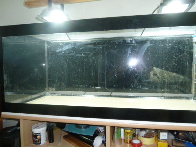 Da es bei mir auch ein "Garnelenbecken zwei in einem" geben muß habe ich kurzer Hand ein 1m Becken aufgetrieben,ne Glasscheibe zugeschnitten und eingeklebt.Somit habe ich 2 Becken 50x40x40.