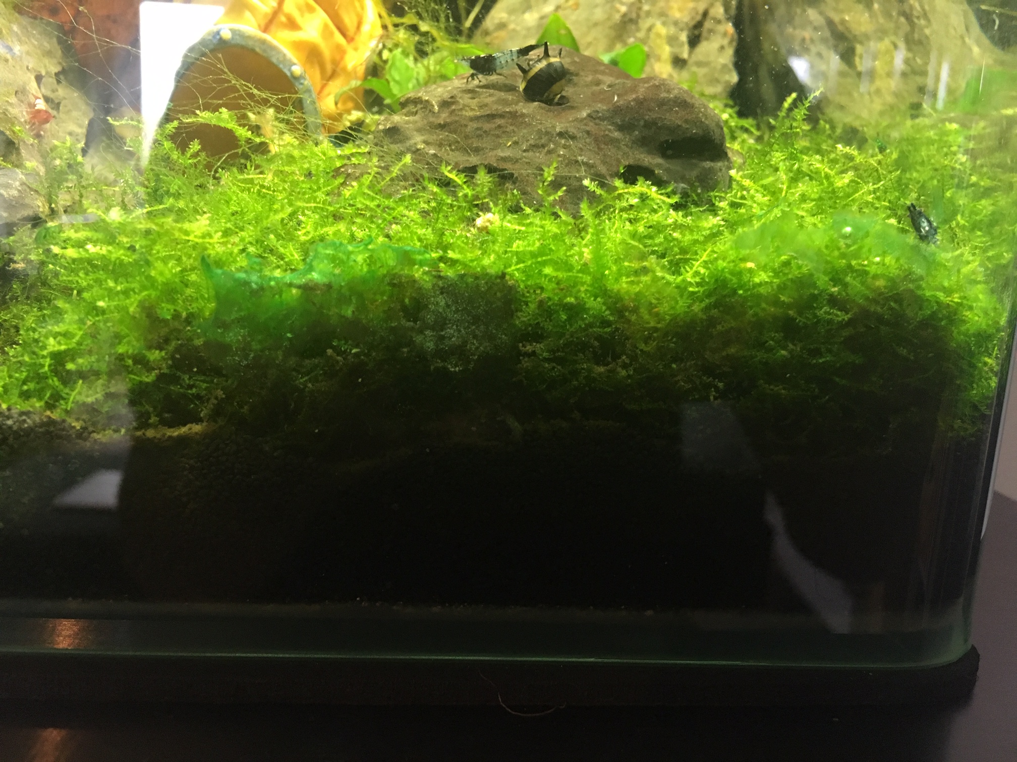 Was mir aufgefallen ist, ich denke wir haben Blaualgen bekommen (siehe Bild). Ist dies ein Grund? Ist das viel für ein Nano Aquarium?