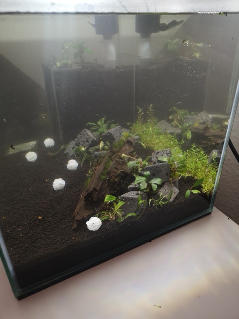 Bodengrund ist Soil und gefiltert wird über eine Filterbox welche ich hier übers Forum schon vor zwei Jahren gekauft habe.
