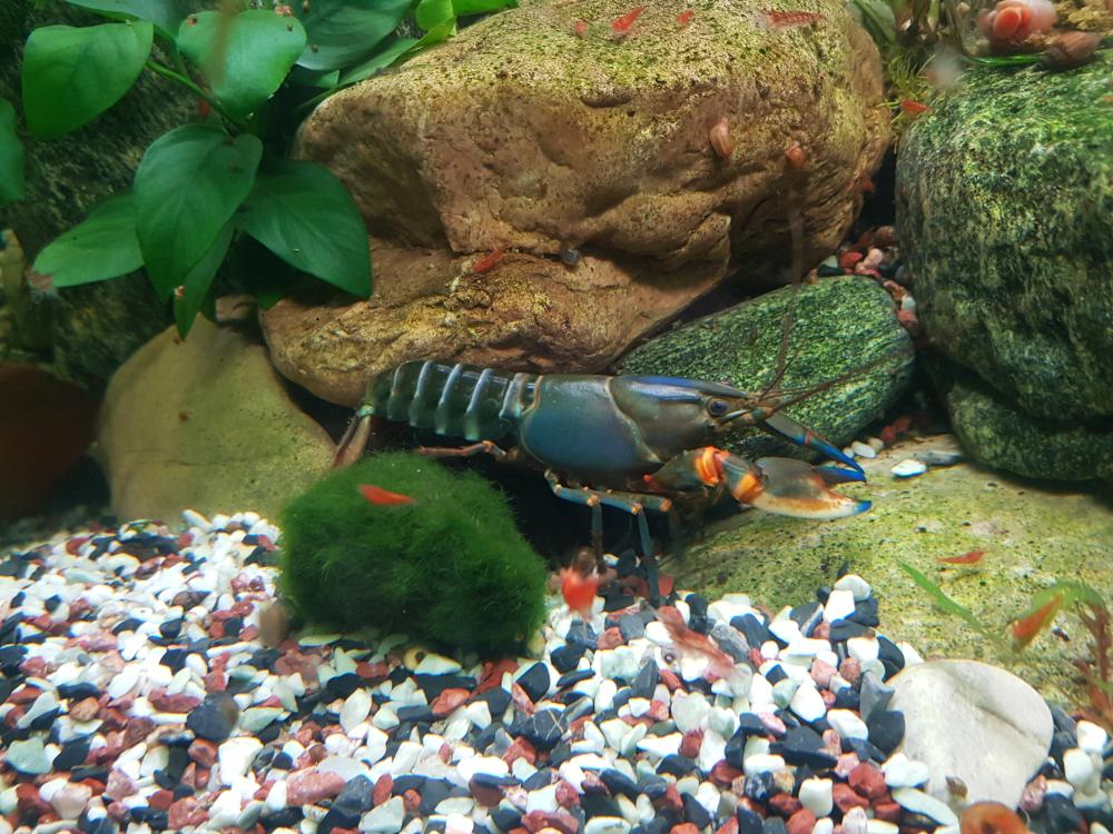 zum Becken: Da ich total begeistert von der Farbenpracht der cherax peknyi var. blue claw Tigerkrebse bin und sie auch durch ihr relativ friedliches Verhalten gegenüber Pflanzen und Garnelen eine gewisse Pflegeleichtigkeit versprechen habe ich mich für folgenden Besatz entschieden: 2 Paare cherax peknyi *blue claw, 25 Neocaridinia Davidi *red sakura*, 4 Atya gabonensis *blaue Monsterfächergarnele*. Bei letzterem habe ich lange gezögert, sollte es da zu Konflikten kommen hätte ich aber sofort jemanden der die Fächergarnelen übernehmen würde. Ansonsten noch Tds, blaue/rote/orangene Phs, Blasenschnecken sowie 12 Pianoschnecken aus eigener Nachzucht (anderes Becken).