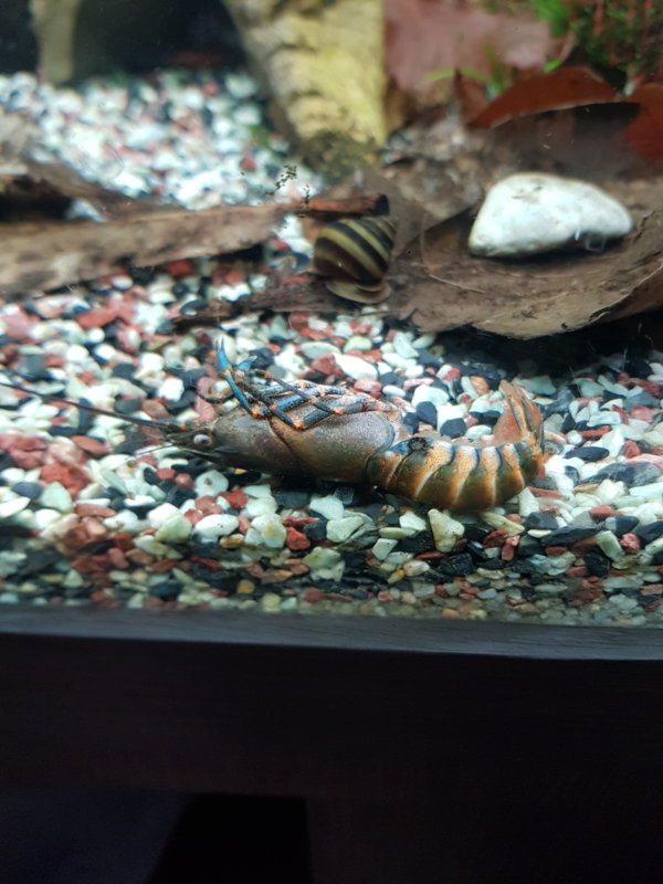 zum Becken: Da ich total begeistert von der Farbenpracht der cherax peknyi var. blue claw Tigerkrebse bin und sie auch durch ihr relativ friedliches Verhalten gegenüber Pflanzen und Garnelen eine gewisse Pflegeleichtigkeit versprechen habe ich mich für folgenden Besatz entschieden: 2 Paare cherax peknyi *blue claw, 25 Neocaridinia Davidi *red sakura*, 4 Atya gabonensis *blaue Monsterfächergarnele*. Bei letzterem habe ich lange gezögert, sollte es da zu Konflikten kommen hätte ich aber sofort jemanden der die Fächergarnelen übernehmen würde. Ansonsten noch Tds, blaue/rote/orangene Phs, Blasenschnecken sowie 12 Pianoschnecken aus eigener Nachzucht (anderes Becken).