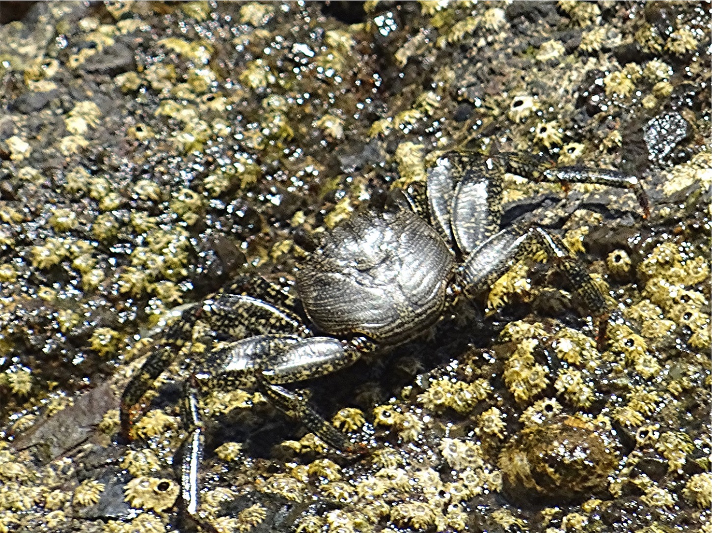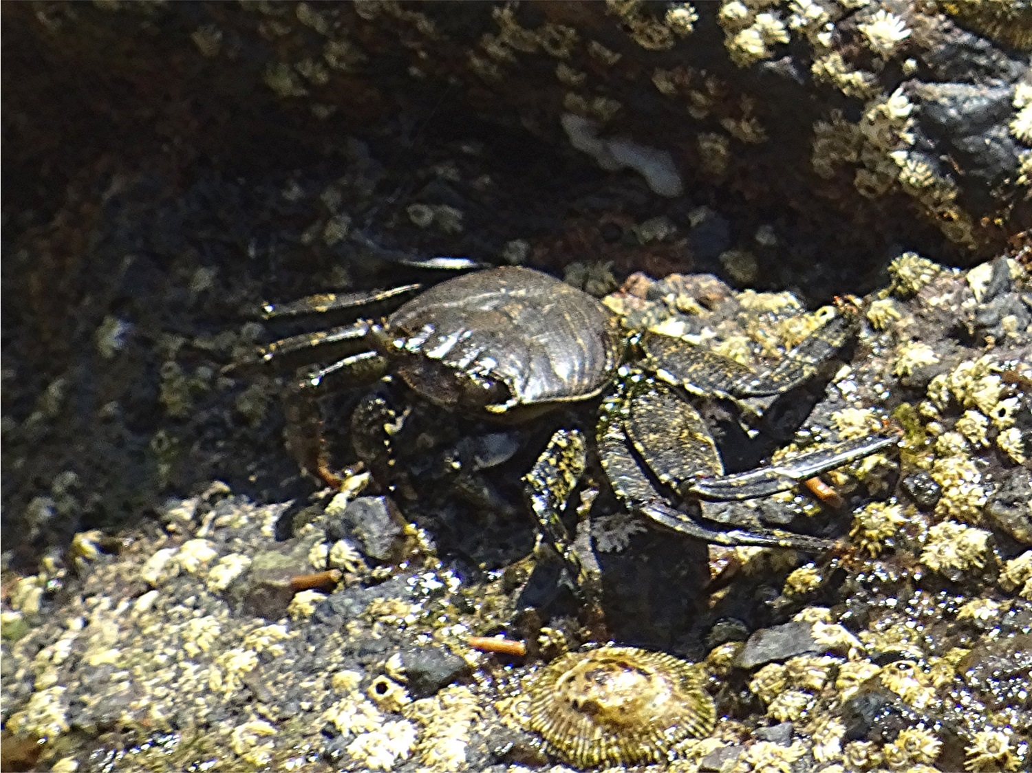 am 17.02.2020 photographierte ich diese Krabben in Maspalomas. Mit der Bildqualität bin ich selbst nicht zufrieden, aber ich hatte nur eine kleine Kamera dabei und mußte auch noch 30-fachen optischen Zoom verwenden, um die Krabben einigermaßen brauchbar abzulichten. Zudem waren die Lichtverhältnisse schlecht und die Tiere merkten doch trotz der Entfernung, daßich auf sie lauerte und verzogen sich vergleichsweise schnell.